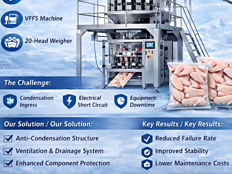 In the modern cold chain food industry, automated packaging equipment is the backbone of production continuity. However, high-humidity, low-temperature environments create a unique engineering paradox: as equipment operates near frozen products, the drastic temperature difference creates condensation. This invisible moisture is the primary enemy of operational stability, often leading to unexpected downtime, electrical failures, and soaring maintenance costs.